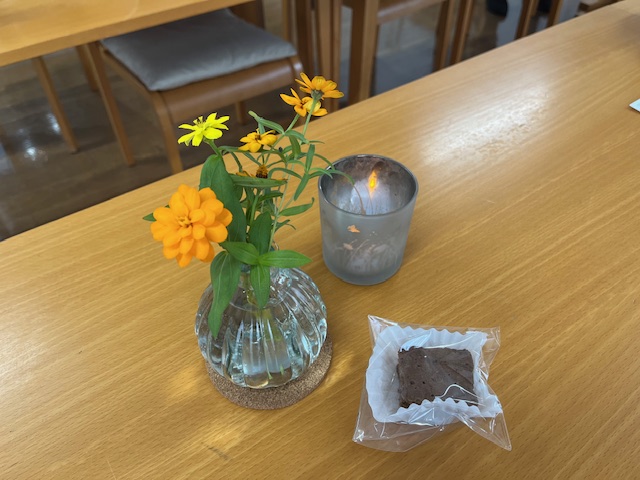 今日は秋のやわらかな日差しが差し込むお部屋に8名の方がおいで下さり、スタッフ4名とあわせて12名でカフェタイムを持ちました。自己紹介で何人かが触れられたこと—必ず来るけれども自分では選べない死の時まで生きていく意味—をめぐって、それぞれ心に湧いてくることを語り合いました。また、「安心、安全な場」についてもそれぞれ思うところを述べ合いました。みなとカフェがそのような場になっていけるようにと願っています。